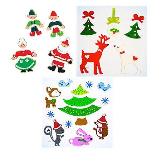 GelGems Christmas Window Clings: Santa and Mrs. Claus, Elves, Reindeer and Woodland Creatures, 3-Piece Gift Set [並行輸入品]
