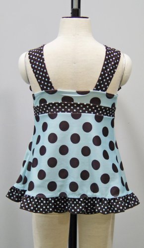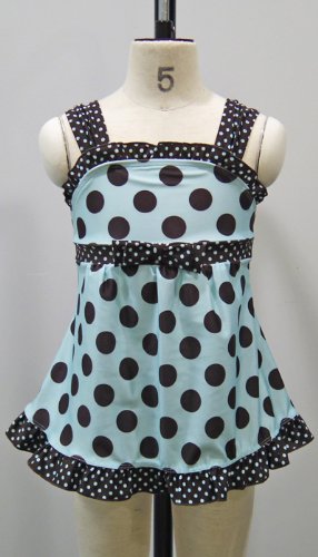 大き目ドット柄が可愛らしいAラインワンピース型・女児用スイムウェアです。