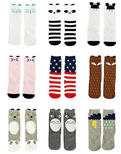 gellwhuベビーガールズボーイズコットン動物Cartoon Knee High Socksストッキング9ペア( L ( 4 – 6年、セットA )
