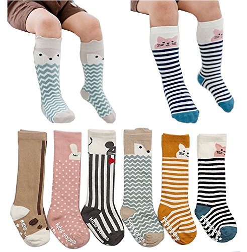 幼児用ソックス、非スキッドコットンソックスBaby Boys Girls Knee High Socks 6-pairs