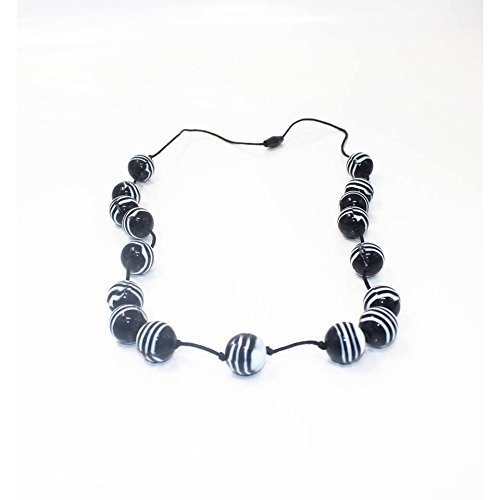 Polished beads on cotton cord;Cord has breakaway clasp for comfort & safety;100% non toxic medical grade silicone - soft on babies gums, washable in hot water, dishwasher or steriliser;Ideal for teething, breastfeeding and babywearing;Must only be interacted with when worn by an adult - this is not a toy