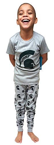 お子様の夢させました場合にはお気に入りの大学チーム彼はこの条件になっているため、この男の子のミシガン州立4 – 7から2枚ぴったりフィット半袖Tシャツパンツ寝間着のセットで来るGEN 2グレー。半袖Tシャツとのスリープパンツは100コットンで快適にフィットし、両方の機能スクリーニング大学グラフィックスが使用されている場合。子供の安全のためこの衣服のサイズのものを着用されないため、耐炎loose-fitting衣服はなく、おそらくに燃える。