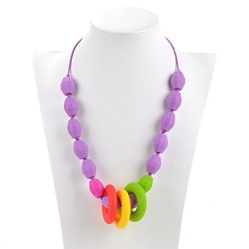 100% FOOD GRADE SILICONE AND SAFE - BPA Free, Phthalates Free, Lead Free, PVC Free, Latex Free, Metal Free, and Cadmium Free;MOMS AND BABIES LOVE IT - The soft, stimulating texture of the necklace soothes the pain of teething. It keeps your infant distracted and engaged while in your arms. Provides a closer bond between you and your baby while looking like the stylish mom;SAFETY FIRST - Breakaway clasp for added safety - Refrigerator Safe (If your baby is having an especially bad day just put in fridge for added comfort and support for your babies teething gums) - Chew-Safe Design for your baby;EASY TO CLEAN - Necklace can be wiped clean with soap and water and is dishwasher top shelf safe - no more worries about nasty germs or dirt;100% SATISFACTION GUARANTEE - We are confident your baby will like this necklace and the value that it provides for your baby