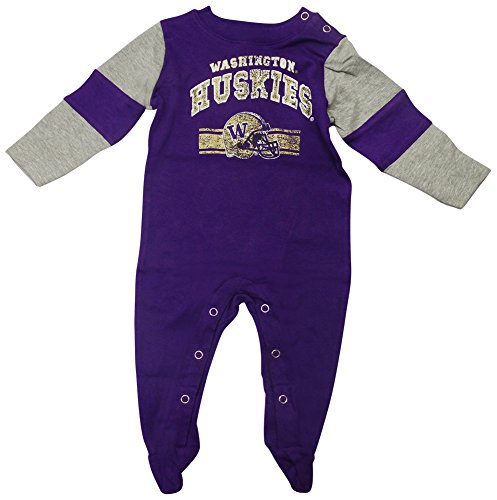 ウェルカムWashington Huskiesファン部にあなたの小さなファンでこの新しいチームによって信じワンジースリーgen2です。2つのスナップ開閉では、ネックと6つの下部にスナップの開閉によって簡単ドレッシングに必ず小さなお子様も快適応援しながらチームのこの季節。