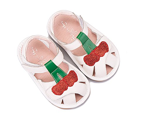 Genda 2Archer(JP) かわいい チェリー ベビーサンダル ベビーシューズ 赤ちゃん ファーストシューズ 女の子 ガールズ レザー 本革 新生児 フォーマル靴 滑り止め 歩行練習 練習靴 出産祝い プレゼント 黒 白 (14.5cm, ホウイト)