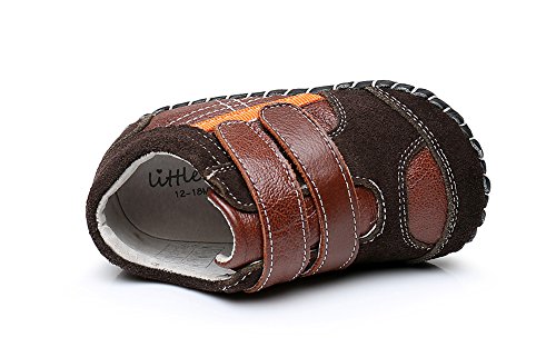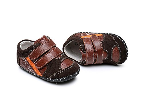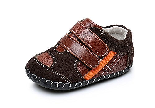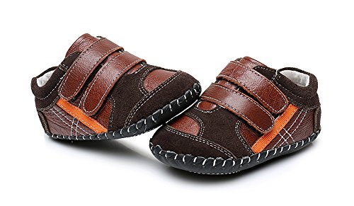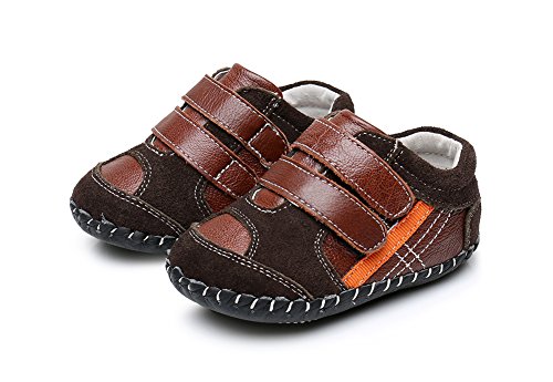 Genda 2Archer(JP) ベビーシューズ ファーストシューズ 男の子 ボーイズ レザー 本革 赤ちゃん キッズシューズ 子供靴 乳児靴 マジックテープ シンプル おしゃれ 滑り止め 柔らかい靴底 歩行練習 出産祝い プレゼント (内寸14cm, ブラウン)