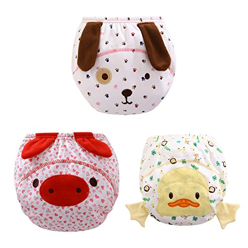 Genda 2Archer(JP) 男女兼用 可愛い 動物 ベビー 赤ちゃん 3層 綿100% 防水 トレーニングパンツ 3枚組 (80, 001)