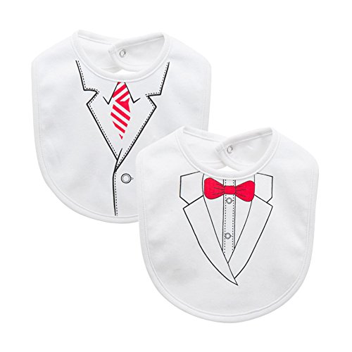 Genda 2Archer(JP) フォーマル よだれかけ ビブ ベビー 男の子 蝶 ネクタイ 赤ちゃん スタイ 女の子 可愛い 2枚 セット 英字 ネックレス 綿100% お食事用 結婚式 出産祝い 誕生日 プレゼント (ボーイズ)