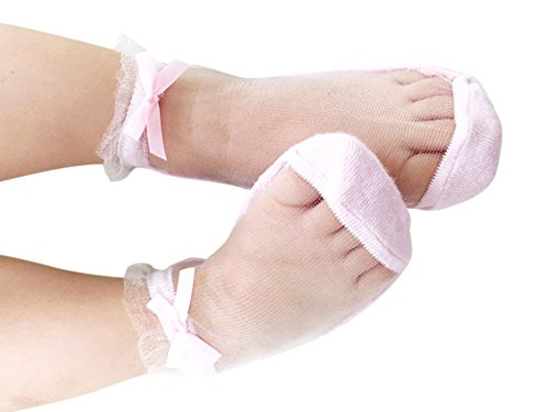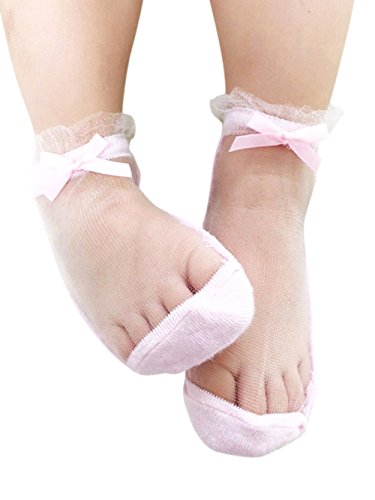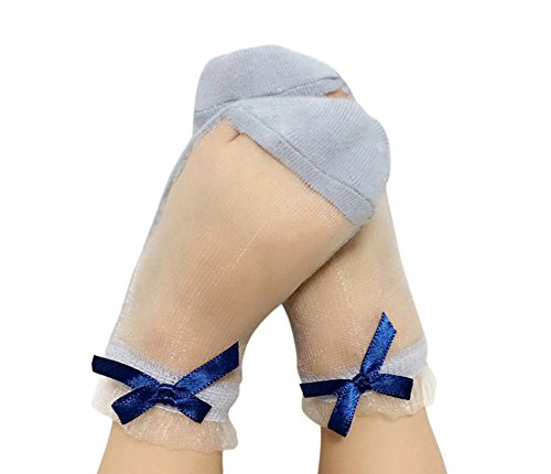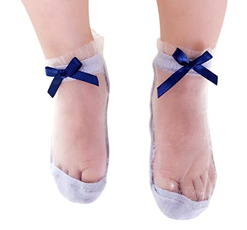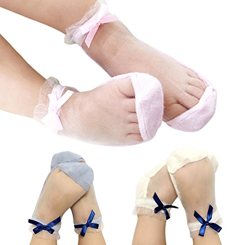 Genda 2Archer(JP) キッズ ベビー ソックス 透明 無地 3点セット 女の子 靴下 可愛い リボン コットン 通気 薄手 (L(4-6歳))