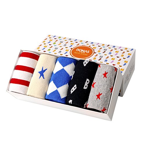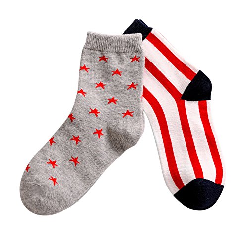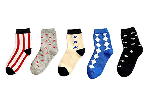Genda 2Archer(JP) キッズ 靴下 男の子 5足セット 星柄 英字 ストライプ 子供 ソックス コットン 通園 通学 撮影 秋冬 可愛い 子供 靴下 (L)