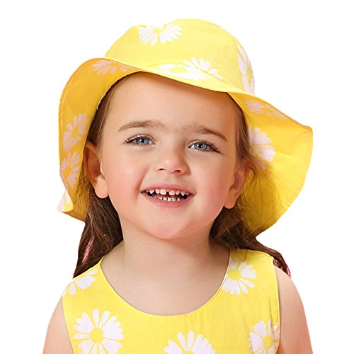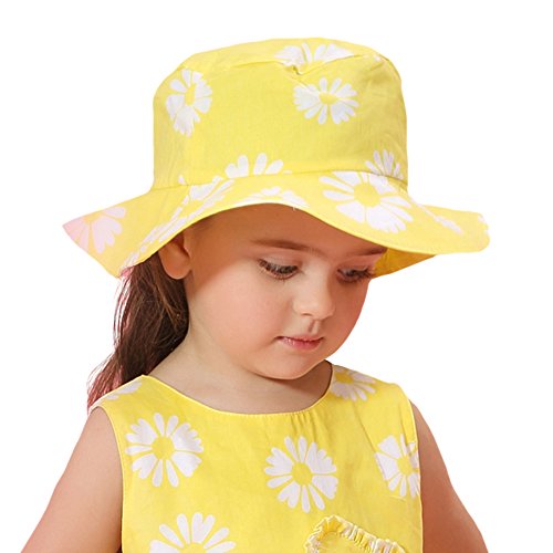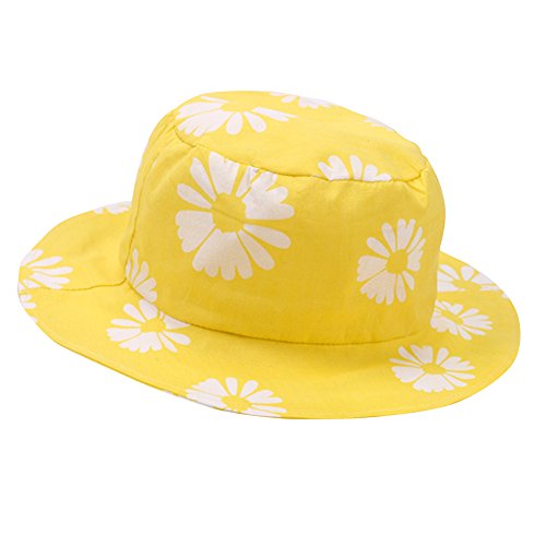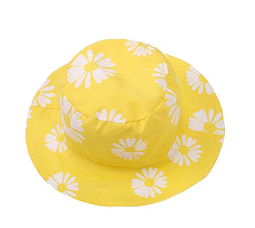 Genda 2Archer(JP) ベビー つば広 ハット キッズ 赤ちゃん キャップ フラワー 綿100% かわいい デイジー 日よけ UVカット 帽子 女の子 春夏 黄色 (50cm)
