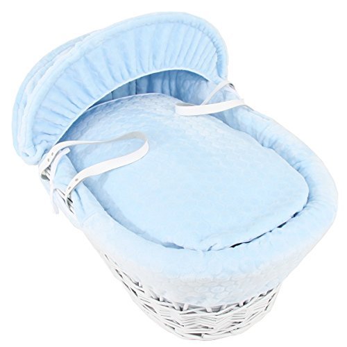 Luxury British Made Soft Blue Bassinet Moses Basket Replacement Cover;Product includes: Adjustable Hood (with hood rods), Thick Padded Bassinet Covers and Quilt;British Made, High End Product. Machine washable at 30 degrees;Please note that basket is NOT included. Fulfilled by Amazon;Dressing suitable for moses baskets with Dimensions up to: Length (up to 85 cm), Width and Height (up to 45cm)