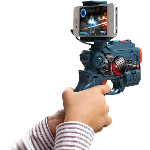 As Earth nears total destruction by alien forces, an elite space commander is tasked for a last-ditch mission to save the planet. Turn your world into a digital battlefield!App Gear Elite CommandAR:An immersive, AR first-person shooter for iPhone and Android smartphonesAs Earth nears total destruction by alien forces, an elite space commander is tasked for a last-ditch mission to save the planetTurn your world into a digital battlefieldUse the included AR markers to take out alien invaders sneaking into your world through a portal from another dimension or accept a risky mission to fight for the survival of the planetImmersive Controls:Controls use 1st person viewpoint with pan and tilt functionAim the pistol and pull its trigger to shoot enemies and targets in the gameUse secondary pistol buttons to raise your shield, change weapons, select special weapons and reloadMultiple Game Modes:Campaign: undertake a dangerous intergalactic mission to save EarthTraining: hone your skills on the shooting rangeAR Battle: battle digital enemies invading your living room or officeBattle with your friend in 2-play co-op modeIncludes:1 pistol1 detachable smart device holder2 AR markers1 user manualSystem Requirements:iOS: iPhone 4 and aboveiPod Touch 4th generation or laterAndroid: selected phones running Google Android 2.3 or above with ARMv7 processor or better (OpenGL ES 2.0)Phones must support iPhone-compatible headphones with built-in microphone unless otherwise specified on the support siteiPhone, iPod Touch or Android smartphones sold separatelyMade of plastic, electronics, foam, metal and paperDimensions: 7.02"L x 8.58"W x 3.12"H