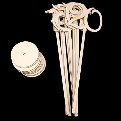 Wooden Shape Table Numbers Stick Set with Base 11-20 [並行輸入品]