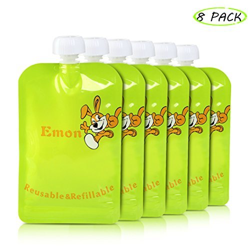 Reusable Food Pouches (4Big 5.7Oz & 4Small 1.4Oz ) Easy to Fill and Clean Double Zipper Means No Leaking Perfect for Homemade and Organic Baby Food Suitable for Babies Toddlers and Kids of All Ages by Emon