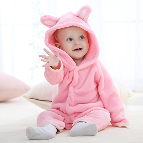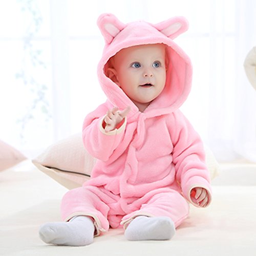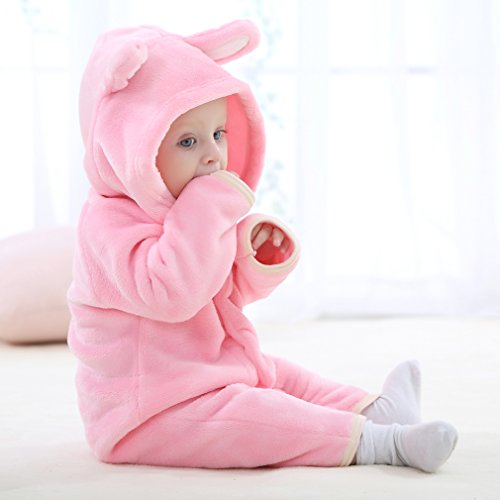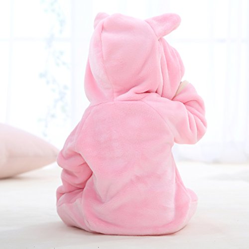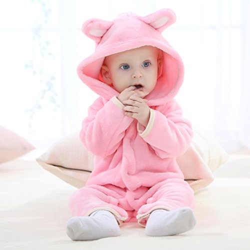 ベビー 着ぐるみ ロンパース もこもこ カバーオール かわいい キッズ コスチューム 防寒着 男の子 女の子 出産祝い (80CM(4-12ヶ月), ピンク)
