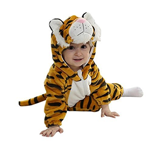 - キュートなトラさんをイメージしたジャンプスーツはジッパー付き、赤ちゃんに脱着やおむつを取り替えるのがカンタン、パパも気楽で大丈夫です