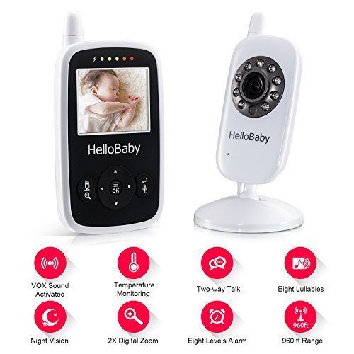 Hello Baby Digital Security Baby Videos Camera with Night Vision Temperature Monitoring & 2 Way Talk Talkback System, White by Hello Baby