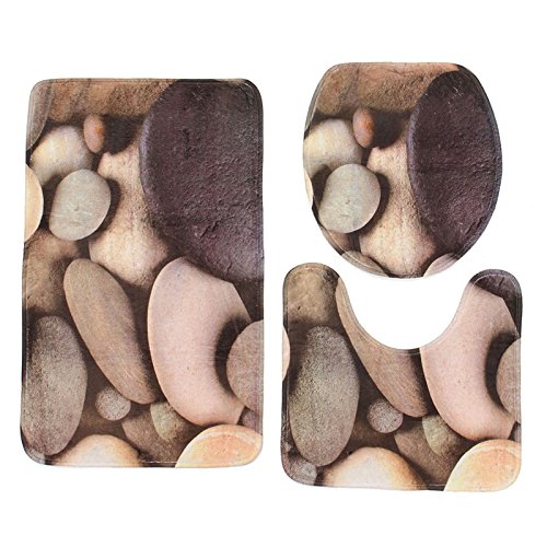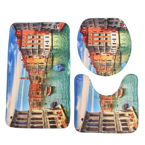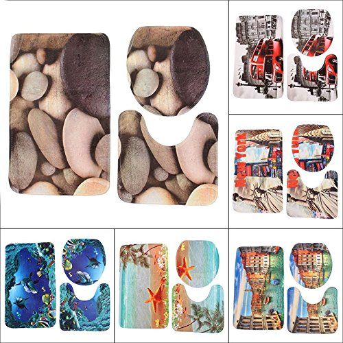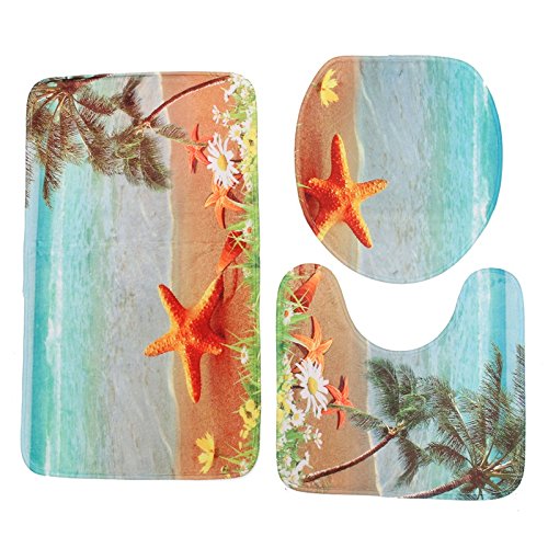 Venice : 3pcs Sea Worldデザイン台座ラグバスマットフランネル貝Contour Pedestalラグトイレ蓋カバーカーペットバスルームセット