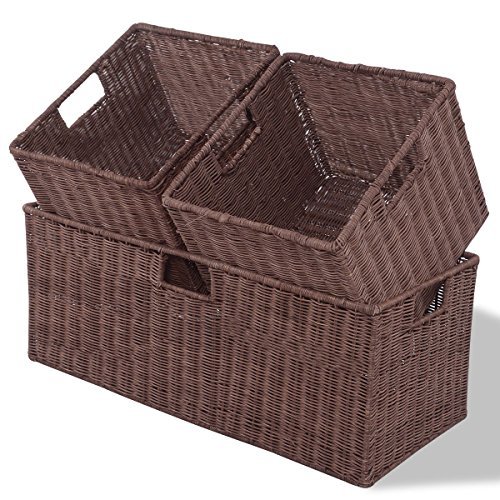 Sturdy 3-pcsネスト長方形キューブラタンストレージバスケット