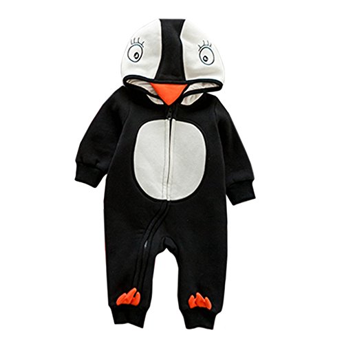 服 ファッション ベビー キッズ 子供 カバーオール 新生児服 連体着 ペンギン ブラック 80