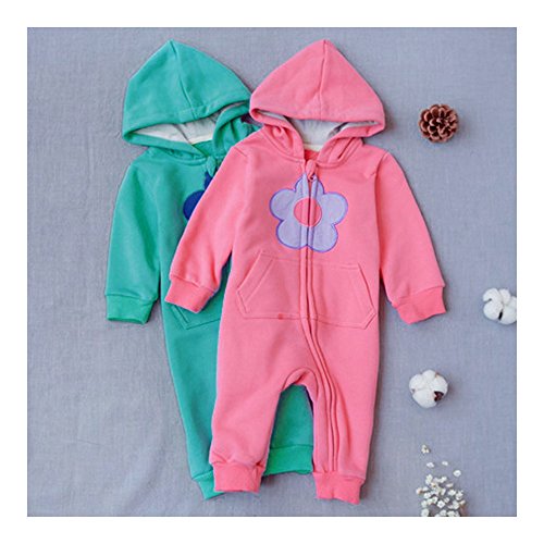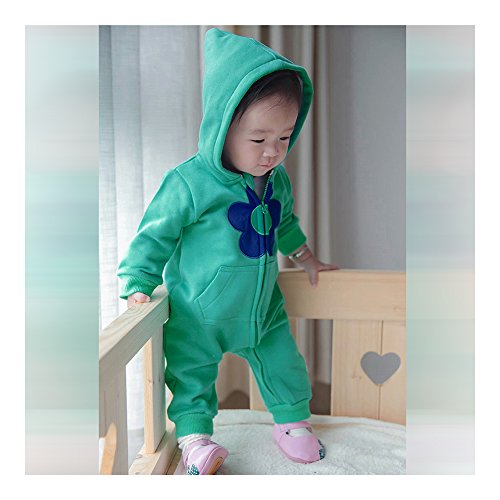 服 ファッション ベビー キッズ カバーオール 新生児服 連体着 花 暖かい グリーン 66cm