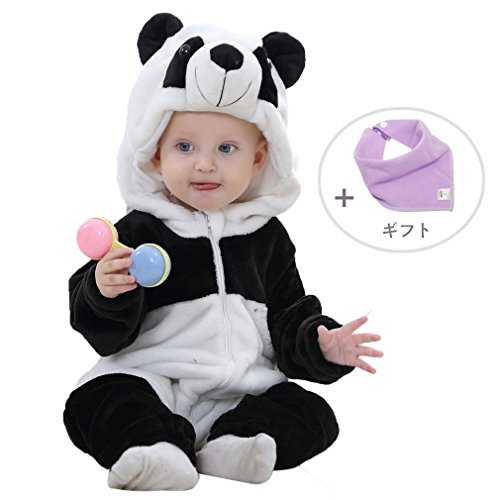 ベビー キッズ用 カバーオール フード付き 着ぐるみ 春と秋 ロンパース オーバーオール 子ども服 もこもこ 防寒着 (80CM(4-12ヶ月), Panda)