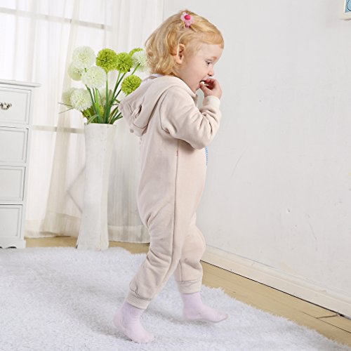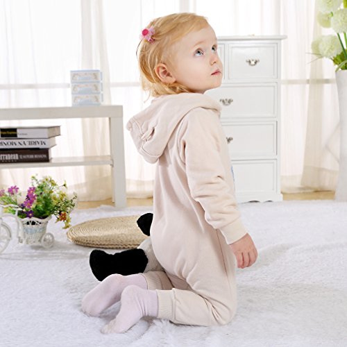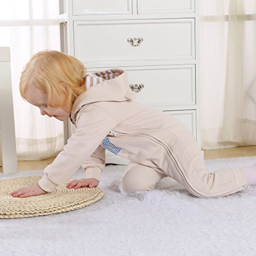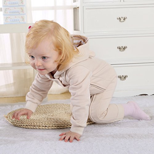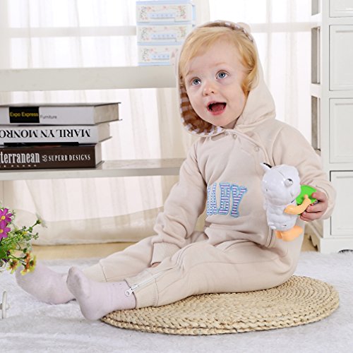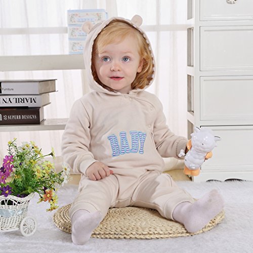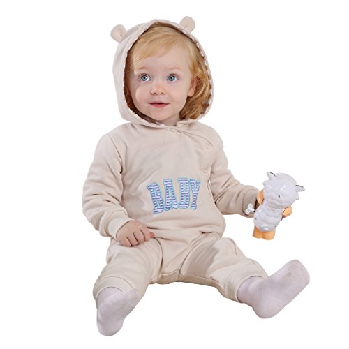子ども服 ベビー ロンパース フード付き キッズ ジャンプスーツ 男の子 女の子 英字柄 カバーオール 新生児 出産祝い 長袖 オーバーオール (100CM(18-24ヶ月), ベージュ)