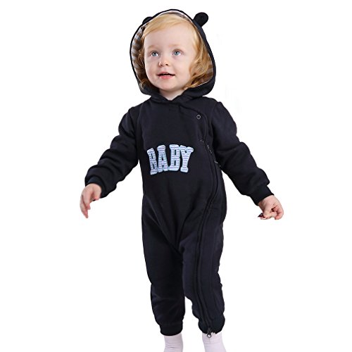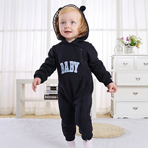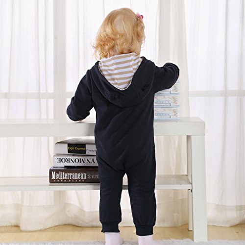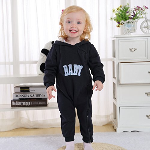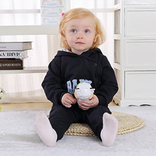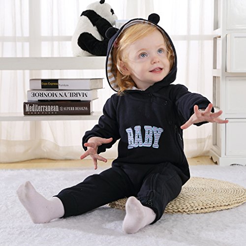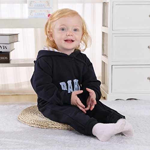 子ども服 ベビー ロンパース フード付き キッズ ジャンプスーツ 男の子 女の子 英字柄 カバーオール 新生児 出産祝い 長袖 オーバーオール (90CM(12-18ヶ月), ネイビー)