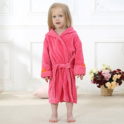 ベビー バスローブ キッズ フード付きバスローブ タオル地 ガウン 子供用 お風呂上がり ルームウェア (50CM(0-2歳), ローズレッド)
