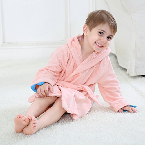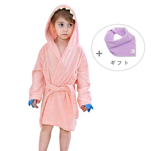 ベビー バスローブ キッズ フード付きバスローブ タオル地 ガウン 子供用 お風呂上がり ルームウェア (60CM(2-4歳), ピンク)