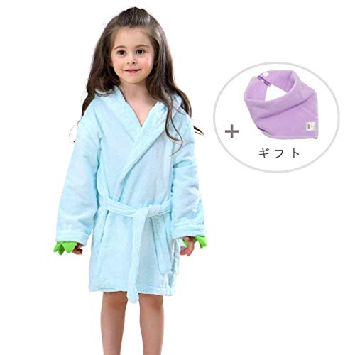 ベビー バスローブ キッズ フード付きバスローブ タオル地 ガウン 子供用 お風呂上がり ルームウェア (50CM(0-2歳), ライトブルー)