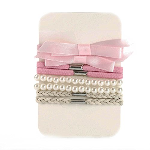 この弾性ヘアバンドの幼児の女の子は、ヘアスタイルを.6pcsロープは2pcsピンク蝶結びヘアロープ、2pcsパールブレスレット、other4pcsヘアバンドです。