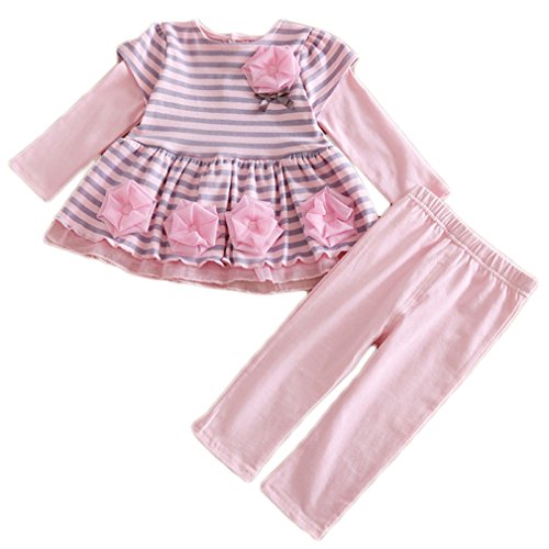 SmartLIFE Baby Girlソフトコットン長袖2ピースClothingセット(フラワー) US サイズ: M カラー: ピンク