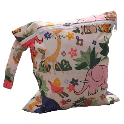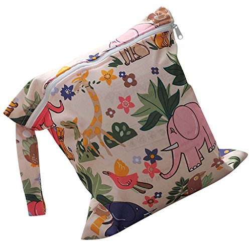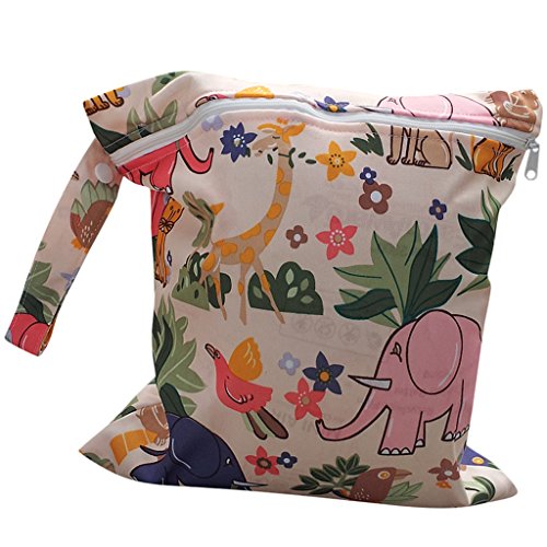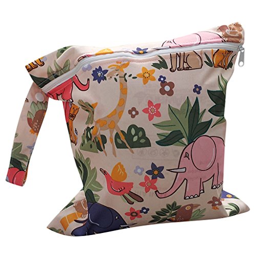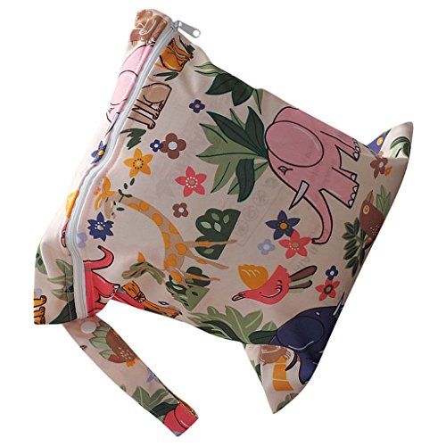 【ノーブランド品】ベビー 幼児用 防水 ファスナー付 再利用可能 おむつバッグ ライオン柄 (ベージュ)