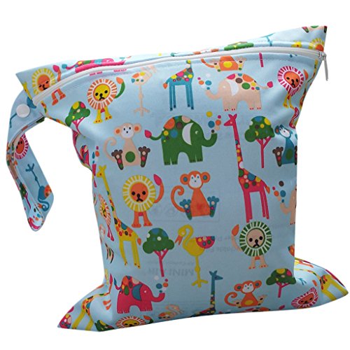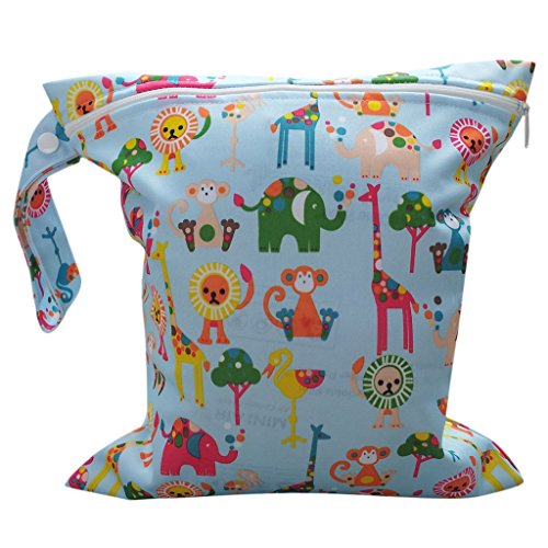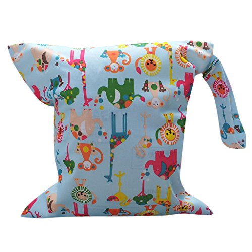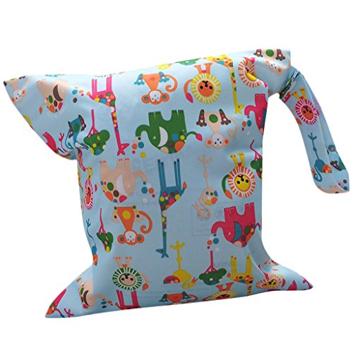 【ノーブランド品】可愛いマザーズバッグ おむつ バッグ 防水 ジッパーバッグ ニマル柄ライトブルー