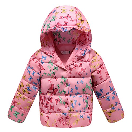 子供服 冬 ダウンジャケット 保温性よく 厚くする ファッション 軽快 着心地良い 蝶の図 ピンク 120cm