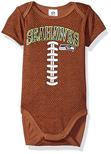 ワンピースの服はフットボールのように見えます。茶色のボールには、実際のフットボールのようにディンプルとレースが付いています。胸には、PACKERSとGのロゴのスクリーン印刷を施しています。ボトムに沿ってスナップが施してあり、トップはストレッチ性があるので着替が簡単です。服はコットン60%、ポリエステル40%で作られています。