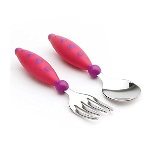 Safely introduces toddler to utensils;Wide, easy-grip handles for little hands;Rounded fork tines for extra safety;Includes(1) fork, (1) spoon;Dishwasher-safe and BPA-free