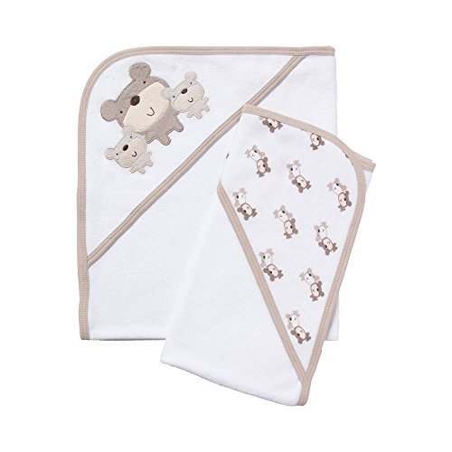Pack includes 2 Gerber baby towels with coordinating designs and colors;Made with 80% cotton / 20% polyester terry for softness;Feature binding along the edges for added durability;Measure 26 x 30 size and have hoods for added comfort and warmth;Adorned with charming applique and embroidery details