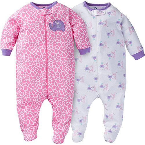 Gerber 女の子の赤ちゃん 前面ジッパーロンパース Sleep 'n Play 2パック入り US サイズ: 3-6 Months カラー: ピンク