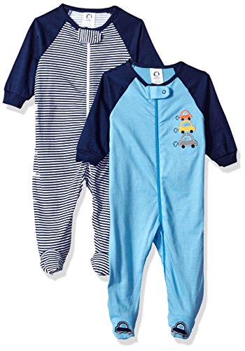 Gerber ボーイズ 赤ちゃん用 2パック フロントファスナー おやすみ&お遊び用 2着パック US サイズ: 0 - 3 Months カラー: ブルー
