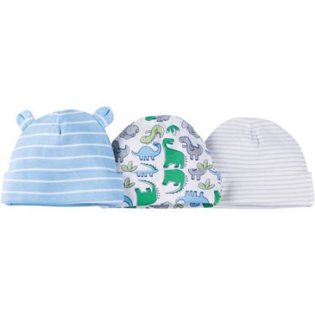 Gerber 新生児から使える コットン100% ベビー キャップ 3個セット 0-6ヶ月用 恐竜 デザイン [並行輸入品]