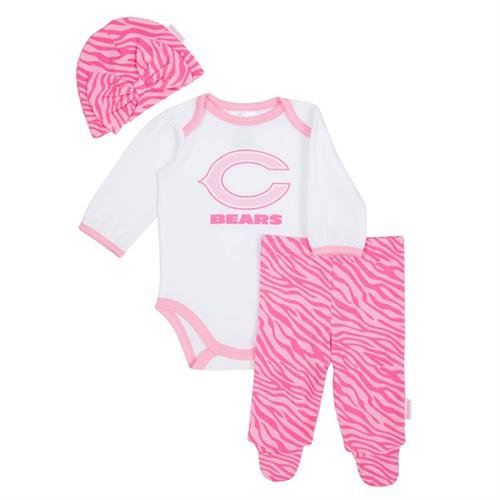 このかわいいピンクの服でスコアもBIGもSweet Baby Bearsファン!長袖のボディスーツは綿100%と機能スクリーン印刷ロゴ前面に。なるとコーディネートできるbow-toppedのキャップと足にピンクのパンツ。BEARS新生児服サイズが0 – 9 M