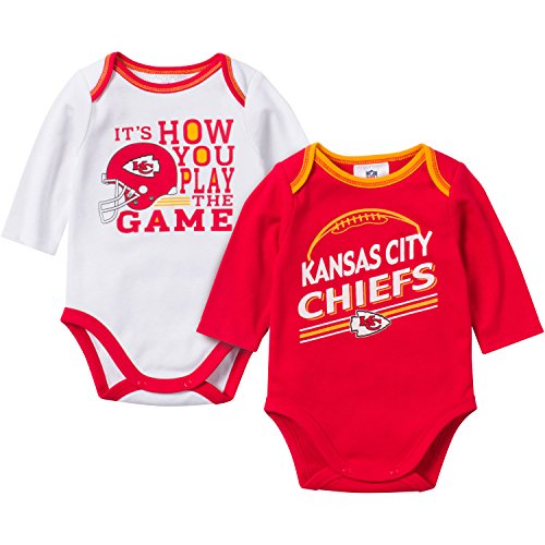 Kansas City Chiefsベビー2 - Pack長袖ボディースーツセットは、きっと試合の日でタッチダウンはスコアを。小さなお子様が着用している愛らしいこれらのファンのお気に入りのフットボールボディスーツにぴったり。スポーツチームの色を指定すると、着心地の良いファブリックです。ラップショルダーのネックラインとスナップ留めの簡単なことを、これらのベビーボディスーツはスコアするたびに、更なるポイント!