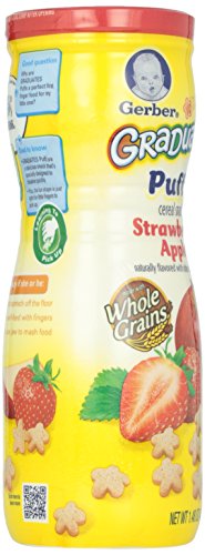 Nourish your little one with whole grain goodness by serving Gerber Puffs Cereal Snack at snack time. Gerber Puffs Cereal Snack have 2 grams of whole grains per serving, and 5 vitamins and minerals making them an ideal snack for your older baby learning to self feed. Gerber Puffs Cereal Snack are easy to chew and swallow and are just the right size for little hands to pick up and enjoy.