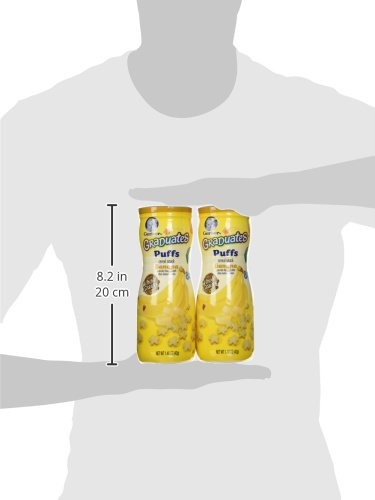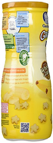 Nourish your little one with whole grain goodness by serving Gerber Puffs Cereal Snack at snack time. Gerber Puffs Cereal Snack have 2 grams of whole grains per serving, and 5 vitamins and minerals making them an ideal snack for your older baby learning to self feed. Gerber Puffs Cereal Snack are easy to chew and swallow and are just the right size for little hands to pick up and enjoy.