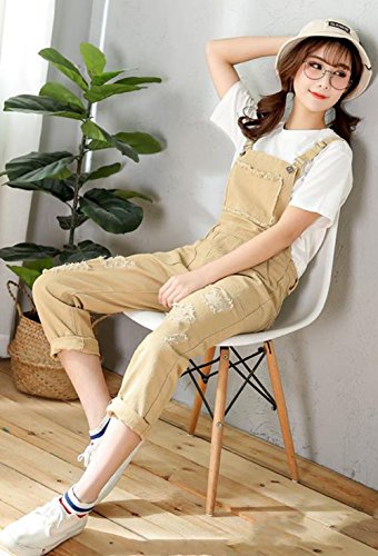 Gergeousダメージ サロペット レディース ゆったり 森ガール系 オーバーオール かわいい ファッション オールインワン 韓国ファッション(Kイエロー)