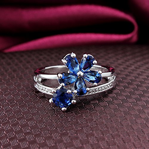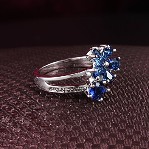 ブルー 花形 ジルコン指輪 愛の証 プリンセス デザイン バラ リング レディース アクセサリー アクセサリー パーティー ドレス プレゼント (18)