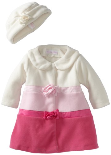 フリースとピンクのカラーブロックコート帽子をかぶってBonnie Jean。ほとんどないコートは、3つ色:クリーム、ピンク、フクシアと、ほとんどのサテンのバラの終了。そののではなくスナップボタンで構成されています。サテンの間のバンディング各色で表示されます。丸みのある襟。小さな帽子はクリーム色とバラが正面にはありません。洗濯と着用しやすいファッションの女の赤ちゃん。